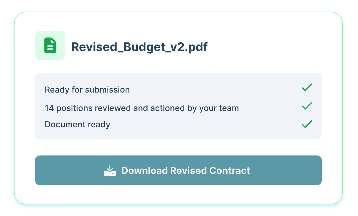 When your team is ready, Aurora produces a clean document reflecting your negotiated position — formatted and ready for the next step in your workflow.
